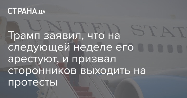 Трамп заявил, что на следующей неделе его арестуют, и призвал сторонников выходить на протесты