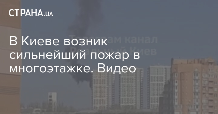 Сильный пожар, в воскресенье, 19 марта, возник в многоэтажном жилом доме Киева. Огонь видно на верхнем этаже.
