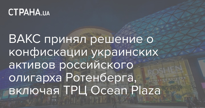 ВАКС принял решение конфисковать украинские активы российского олигарха Аркадия Ротенберга, в том числе ТРЦ Ocean Plaza.