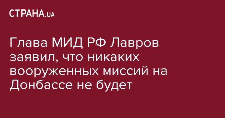 "Такой необходимости не существует, никаких военизированных миссий ни ОБСЕ, ни какой-либо другой структуры, о чем периодически говорят в Киеве, не будет, никто даже о них не помышляет",- сказал Лавров.