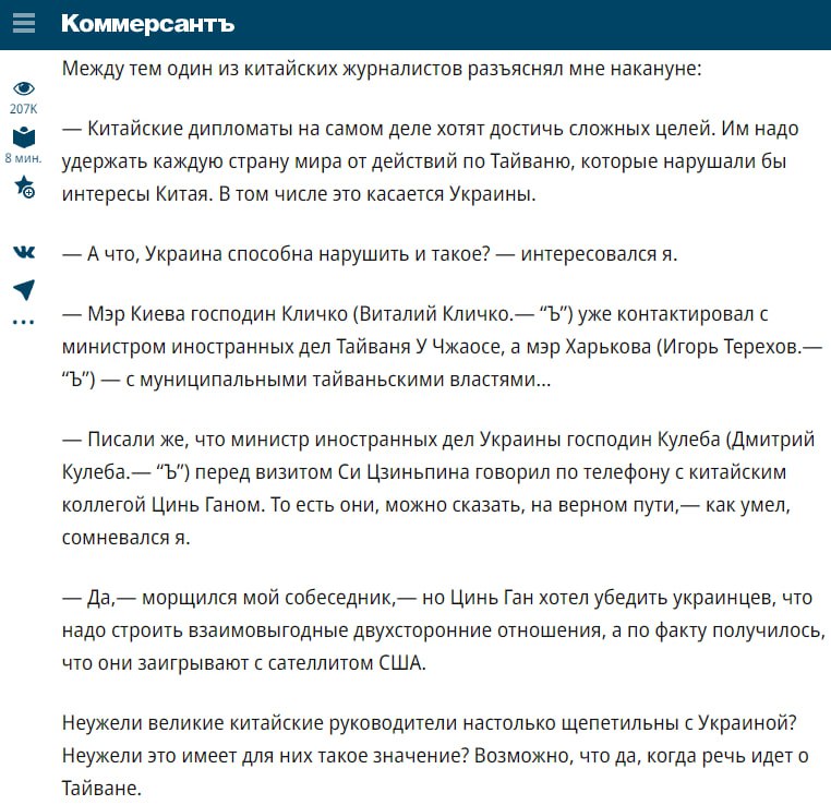 Но китайские товарищи, как видим, говорят и о тревожных звоночках между Киевом и Пекином (по крайней мере, так об этом пишут российские медиа).