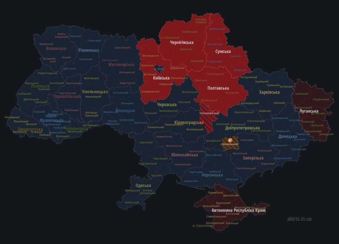 00.13 Тревога в Киевской области, столице и соседних регионах.