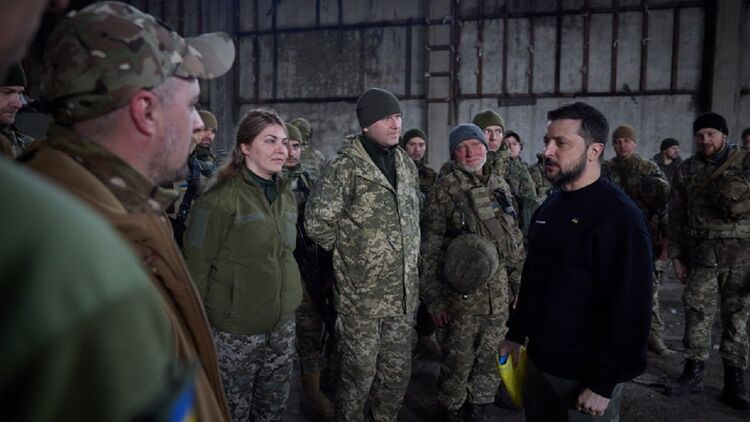 Также Офис президента публикует видео посещения Зеленским позиций близ Бахмута. На видео Зеленский благодарит бойцов за защиту государства и вручает им награды.