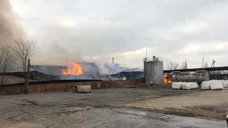 В Ростовской области РФ произошел крупный пожар на складе с целлюлозной продукцией. Видео