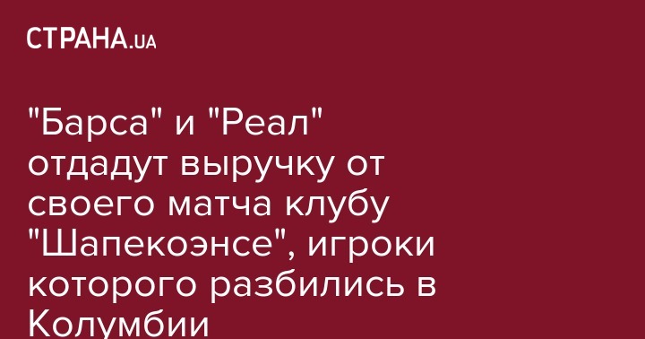 "Барса" и "Реал" отдадут выручку от своего матча клубу "Шапекоэнсе", игроки которого разбились в Колумбии