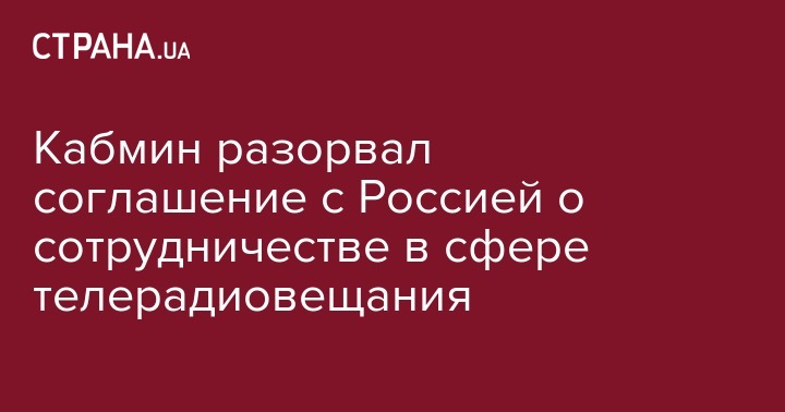 Кабинет министров Украины денонсировал соглашение с правительством РФ о сотрудничестве в сфере телевидения и радиовещания. Такое решение было принято на заседании Кабмина 30 ноября, передает канал "112.ua"