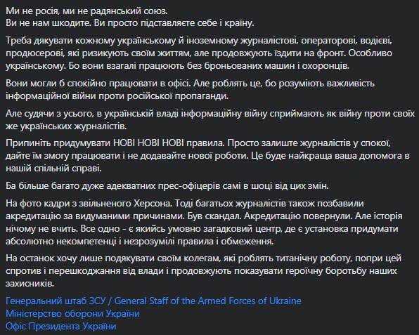 14.44 В Украине продолжается скандал с ограничением СМИ в доступе к линии фронта.