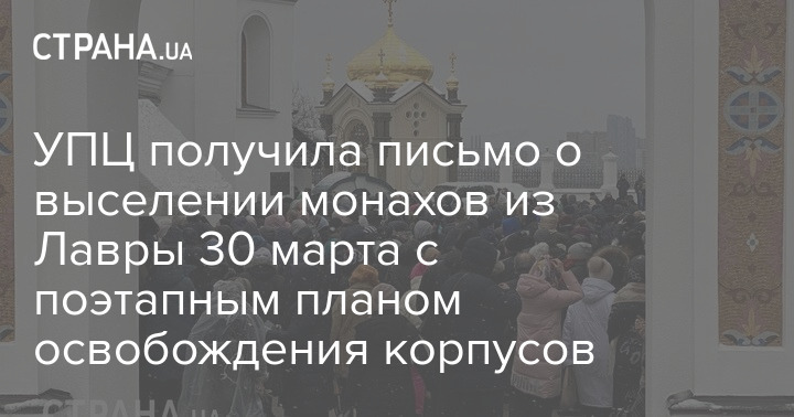 Украинская православная церковь получила письмо от Национального заповедника "Киево-Печерская Лавра", из содержания которого следует, что выселять монахов УПЦ власти планируют завтра, 30 марта.