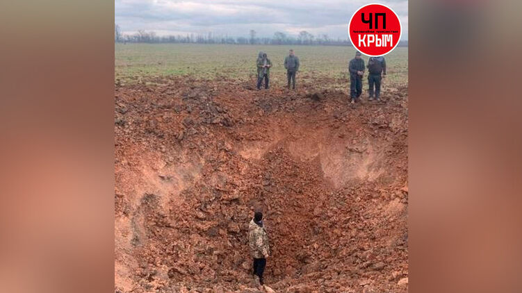 Воронка глубиной в несколько метров. Появились новые фото с места падения беспилотника в Крыму