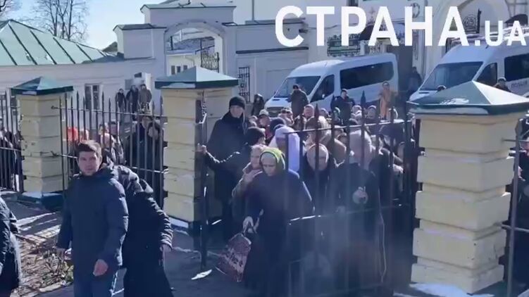 Верующие Украинской православной церкви (УПЦ) блокируют их работу. Они взяли членов комиссии в кольцо и не допускают их к зданиям, которые они хотят проверить.