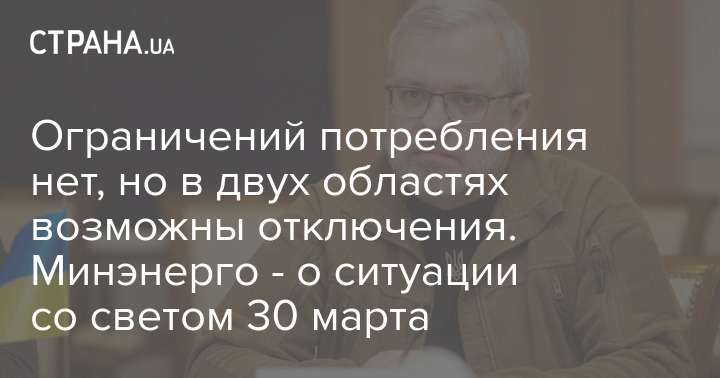 Министр энергетики Украины Герман Галущенко заявил, что в четверг, 30 марта, энергосистема страны работает без ограничений потребителей с резервом мощности. Однако в некоторых населенных пунктах Одесской и Черниговской областей еще возможны непродолжительные отключения.