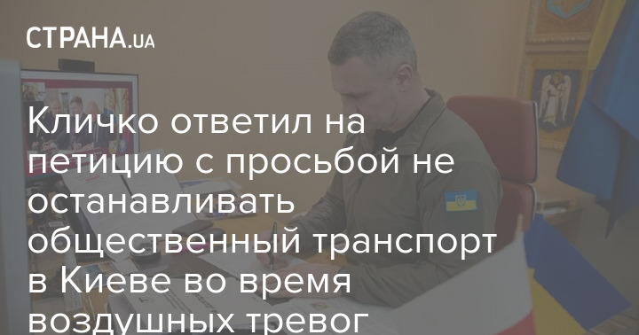 Мэр Киева Виталий Кличко ответил на петицию с просьбой не останавливать общественный транспорт в Киеве во время тревоги.