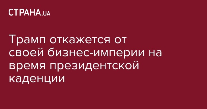 Новоизбранный президент США Дональд Трамп заявил, что полностью уходит из бизнеса на период своего президентства. Об этом он написал в своем Twitter.