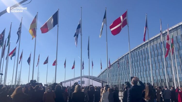 У штаб-квартиры НАТО в Брюсселе торжественно подняли флаг Финляндии, которая сегодня официально стала 31-м членом НАТО.