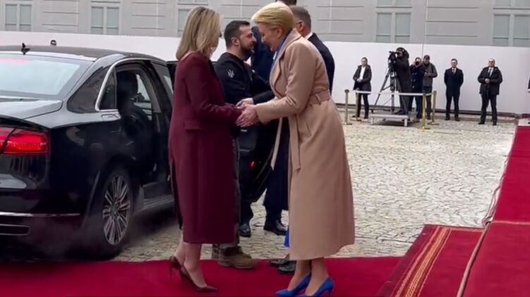Канцелярия президента Польши публикует видео встречи с президентом Украины Владимиром Зеленским и его супругой Еленой, которые прибыли с официальным визитом в Варшаву.