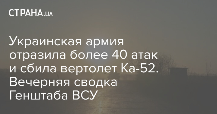 В Генеральном штабе Вооруженных сил Украины опубликовали оперативную сводку с фронта по состоянию на 18:00 5 апреля. Сообщается, что украинская армия отразила более 40 атак на четырех направлениях и сбила вертолет Ка-52.
