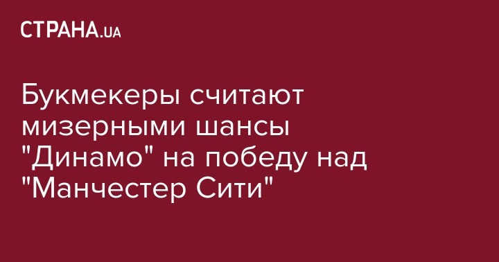 Букмекеры принимают ставки на победу "Динамо" над английским "Манчестер Сити" в 1/8 Лиги Чемпионов в пропорции 1:5,8-7,7. ОБ этом сообщают "Украинские новости"