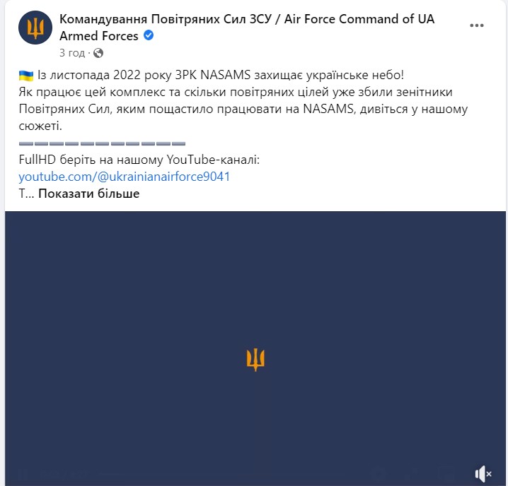 Воздушные силы Украины впервые показали работу зенитно-ракетных комплексов NASAMS.