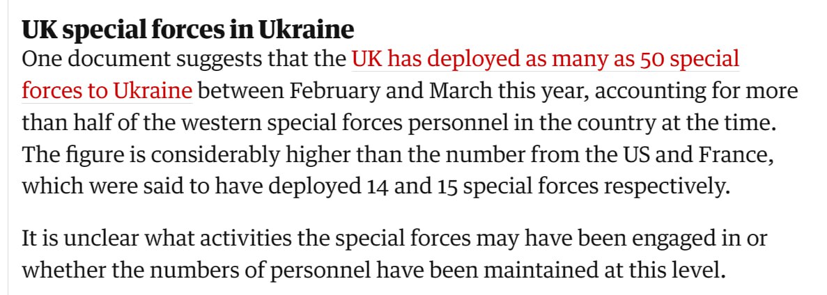 Из утечек Пентагона стало известно, сколько западных спецназовцев могли находиться в Украине во время войны