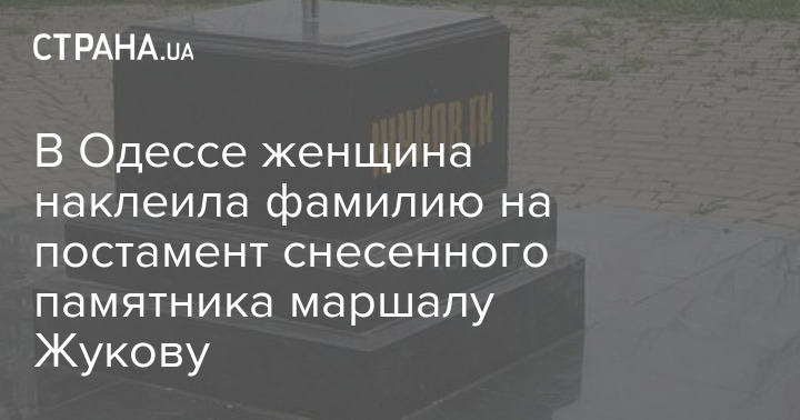 В Одессе местная жительница наклеила фамилию и инициалы советского полководца, маршала Советского Союза Георгия Жукова на место, где ранее был его памятник.