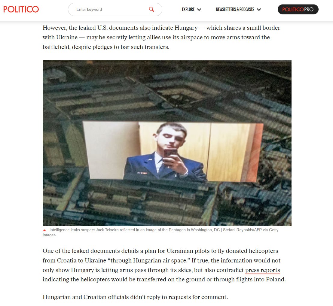 В частности, в одном из документов подробно описывается план украинских летчиков переправить переданные Украине вертолеты из Хорватии в Украину "через воздушное пространство Венгрии".