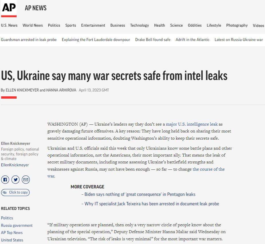 Напомним, согласно слитым документам Пентагона, американская разведка перехватила информацию российской разведки. Согласно полученным данным, Китай одобрил предоставление военной помощи России в начале этого года и планировал замаскировать военную технику под гражданские поставки.
