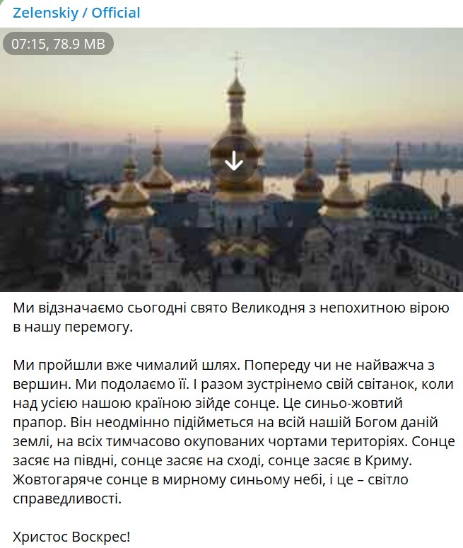 Отметим, что свое пасхальное обращение Зеленский сделал у главного храма Киево-Печерской лавры - Успенского собора.