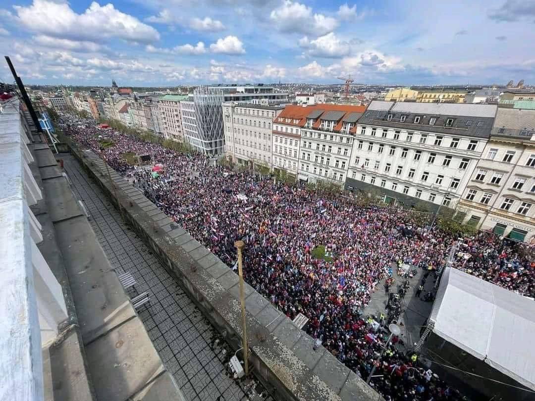 В Праге десятки тысяч чехов вышли на протест против войны и роста цен. Фото