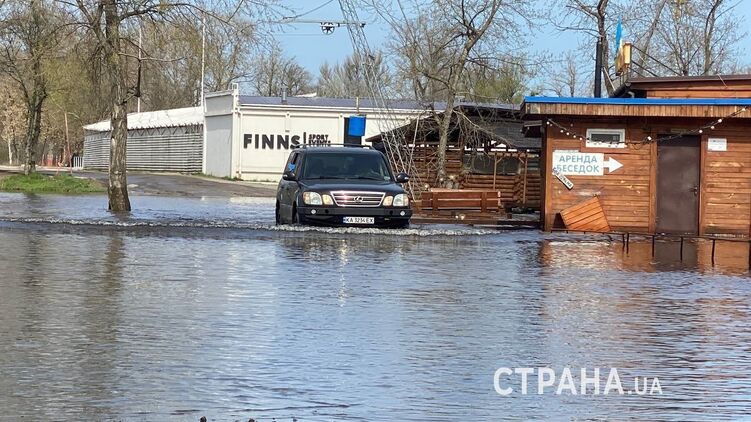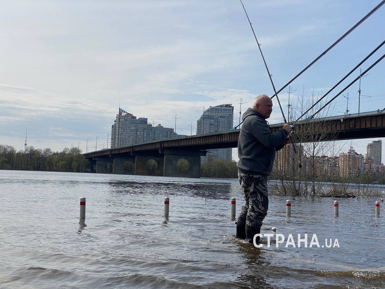Под водой также оказались площадки для паркинга автомобилей. Некоторые киевляне на таких парковках устроили целое развлечения катаясь здесь на автомобилях. А кто-то даже ловит рыбу.