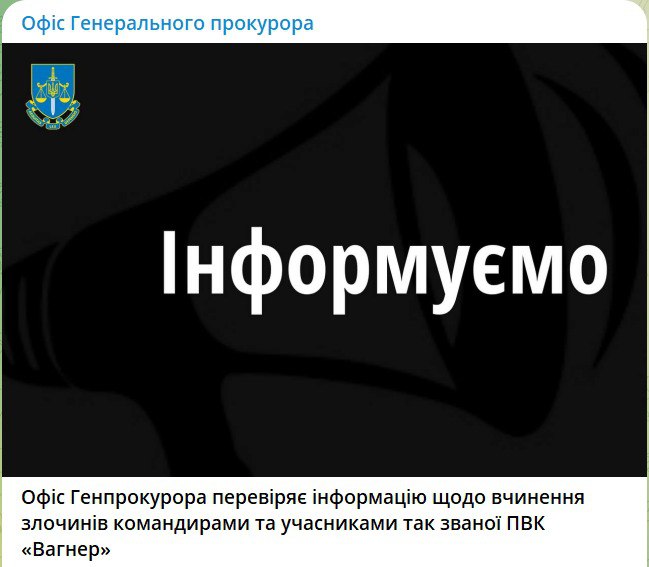 Между тем Офис Генпрокурора уже проверяет информацию о совершении преступлений командирами и участниками ЧВК "Вагнер".