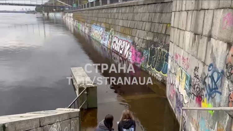 В Киеве из-за обильных дождей на затопленном берегу Днепра ловят рыбу и устраивают автошоу.