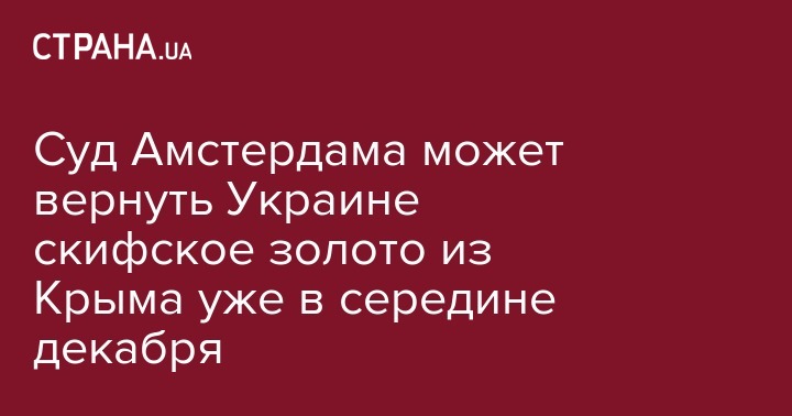 Сегодня, 1 декабря, первый замминистра культуры Украины Светлана Фоменко заявила, что первое решение Окружного суда Амстердама по делу о возврате Украине хранящихся в музее Алларда Пирсона экспонатов крымских музеев ("скифское золото"), будет вынесено 14 декабря, передает "Интерфакс-Украина".