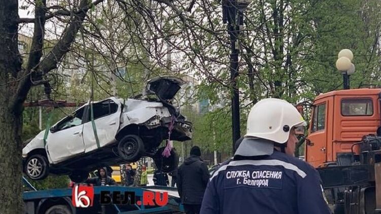 В Белгороде сняли с крыши магазина авто, пострадавшее во время взрыва авиабомбы