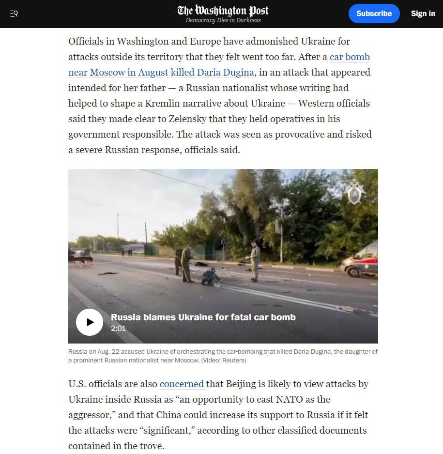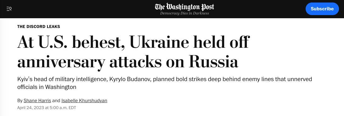 14.28 Украина отложила "юбилейные" атаки по РФ по просьбе США. пишет Washington Post со ссылкой на слитые документы Пентагона.