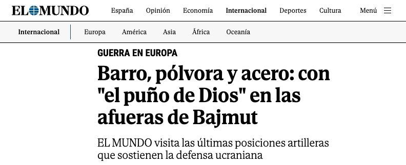 13.45 Испанское издание El Mundo заявляет о выводе основных частей ВСУ из Бахмута. По его данным, в городе осталась лишь пара украинских бригад.