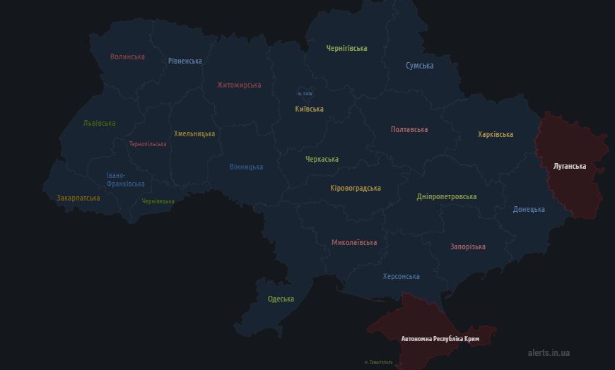 06.40 Карта тревог на сейчас.