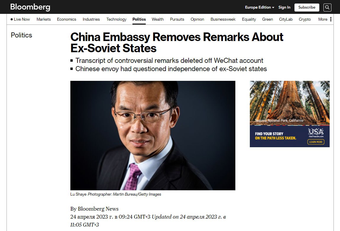 12.05 Посольство Китая во Франции удалило стенограмму интервью, в котором посол КНР поставил под сомнение независимость республик бывшего СССР, пишет Bloomberg.
