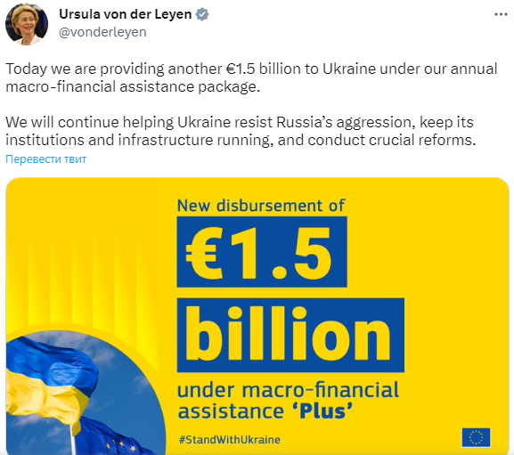 Европейский союз в рамках ежегодного пакета макрофинансовой помощи Украине предоставил еще 1,5 миллиарда евро.