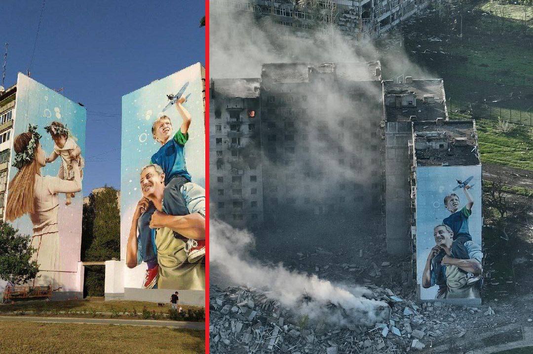 21:07 Видео момента взрыва дома с муралом в Бахмуте.