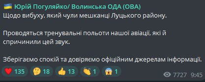 10.25 В Луцком районе Волынской области местные слышали взрыв.