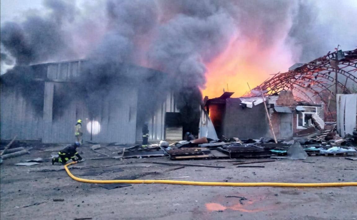 Разрушено здание частного предприятия. Также до сих пор горит строительная база.