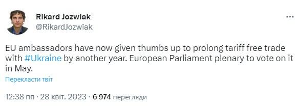 Действующие меры, вводящие беспошлинную торговлю с Украиной, заканчиваются 5 июня, поэтому новые меры должны вступить в силу на день позже. Послы ЕС сегодня проголосовали за соответствующий регламент.