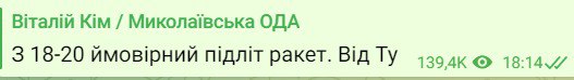 07.30 Информация о ракетной атаке на Киев от главы Киевской городской военной администрации Сергея Попко.