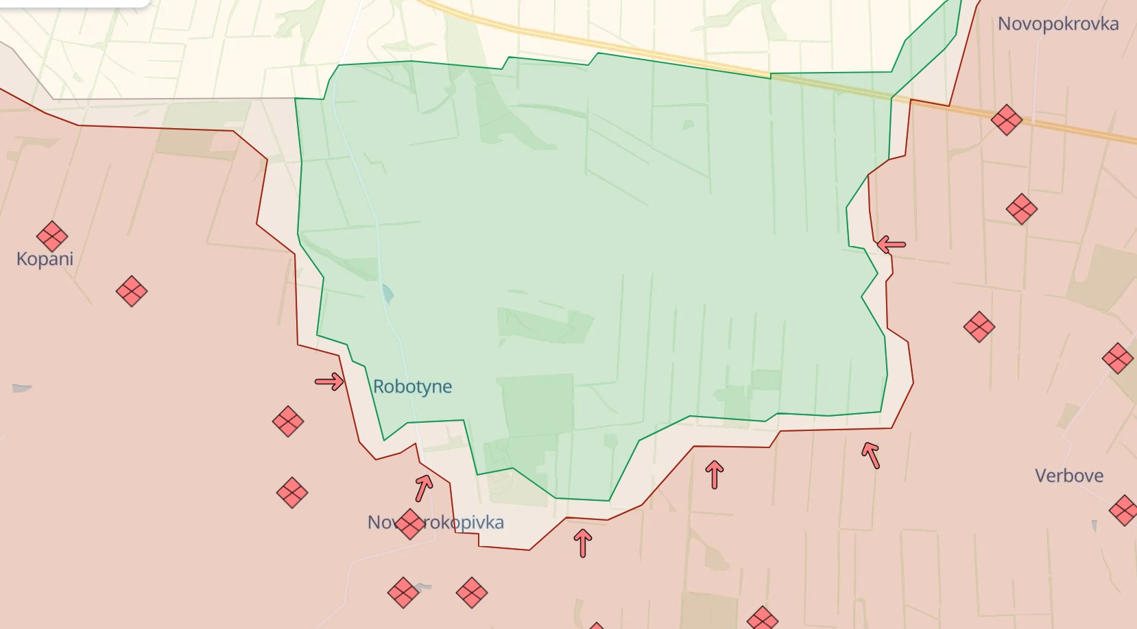 При этом Институт сообщает, что россияне продвинулись на западе от села Работино со стороны Копаней и атакуют со стороны Новопрокоповки (к югу от Работино).
