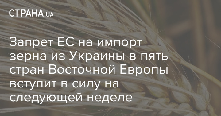 Запрет ЕС на импорт зерна из Украины в пять стран Восточной Европы вступит в силу на следующей неделе