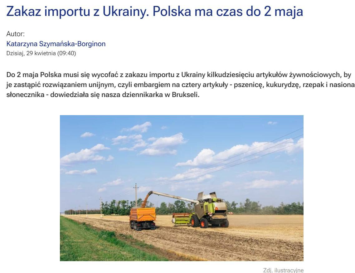 Напомним, Украина направила ноты протеста Польше и ЕС по поводу запрета на импорт агропродукции.