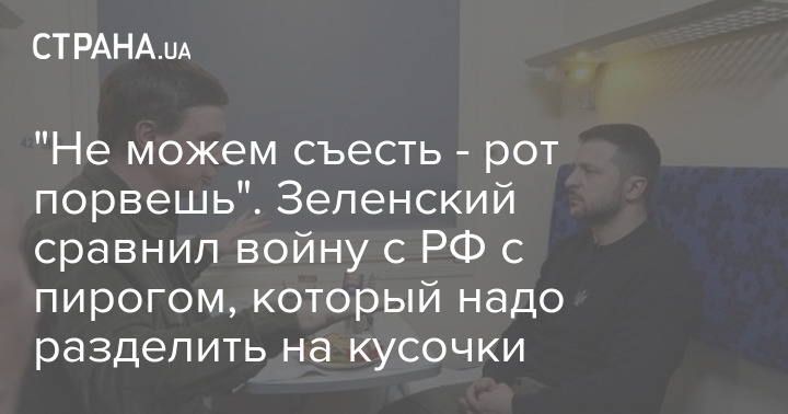 "Война - как тот пирог - с Российской Федерацией. Мы не можем ее съесть - рот порвешь, большая страна по объему", - сказал Зеленский.