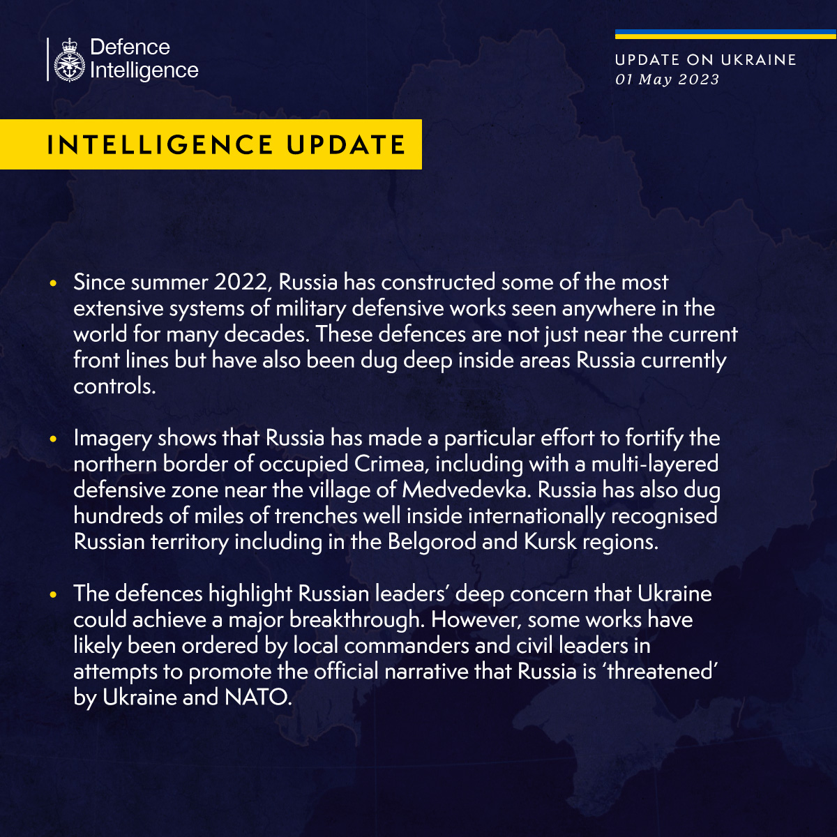 В сводке британской разведки говорится, что эти оборонительные сооружения находятся не только рядом с нынешними линиями фронта, но и глубоко вклинены в районы, которые в настоящее время контролируются РФ.