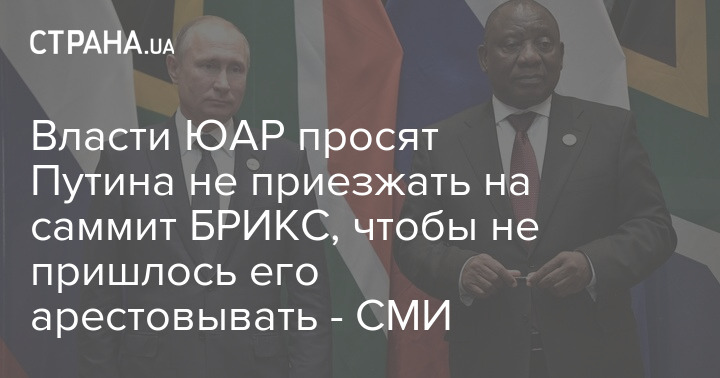 Власти ЮАР попросили президента РФ Владимира Путина воздержаться от визита на саммит БРИКС из-за ордера МУС. Однако Путину предложено принять участие в саммите по видеосвязи.