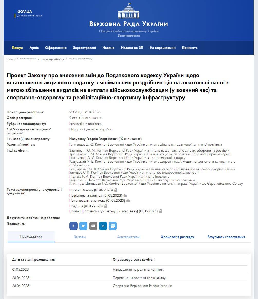 В Верховной Раде зарегистрировали три законопроекта (№9251, №9252, №9253) о повышении на 10% акцизов на алкоголь. Вырученные средства планируется направить на выплаты военным.